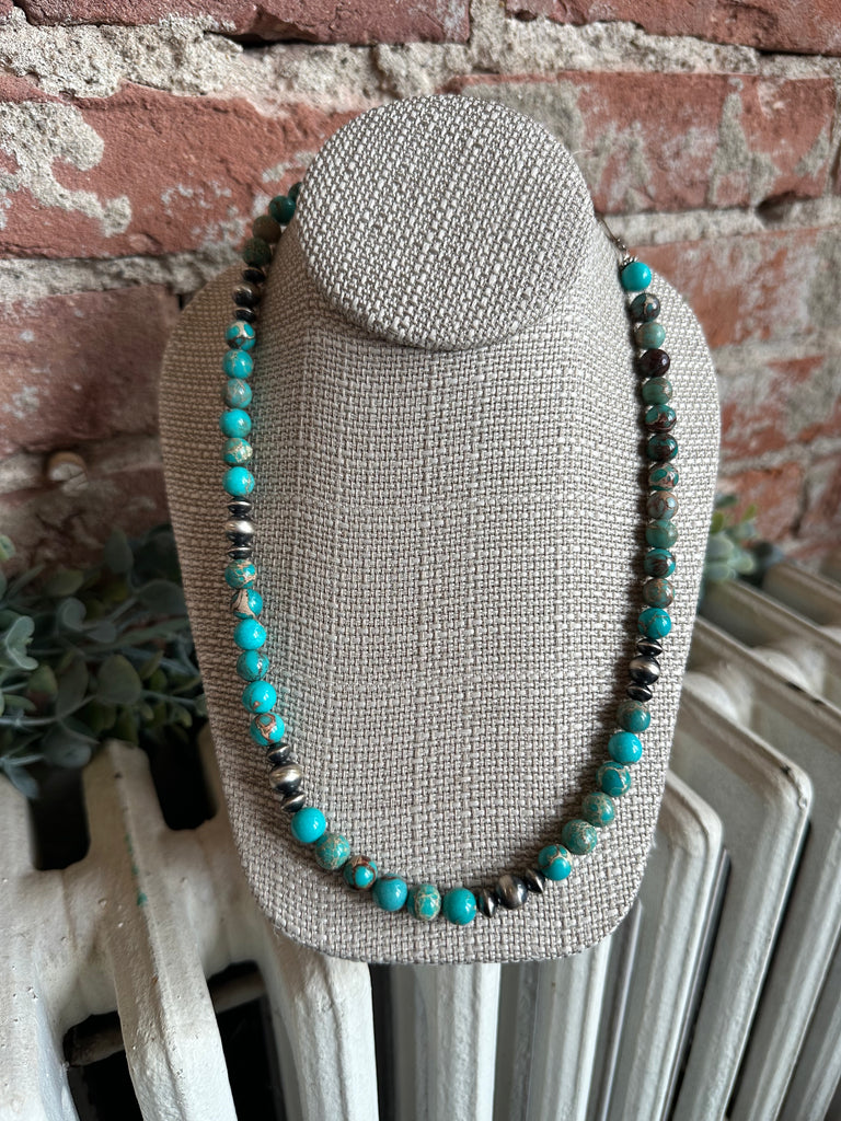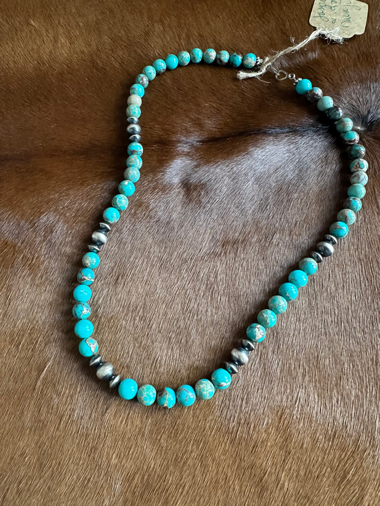 21” Jasper & Sterling Silver Machine Made Pearls